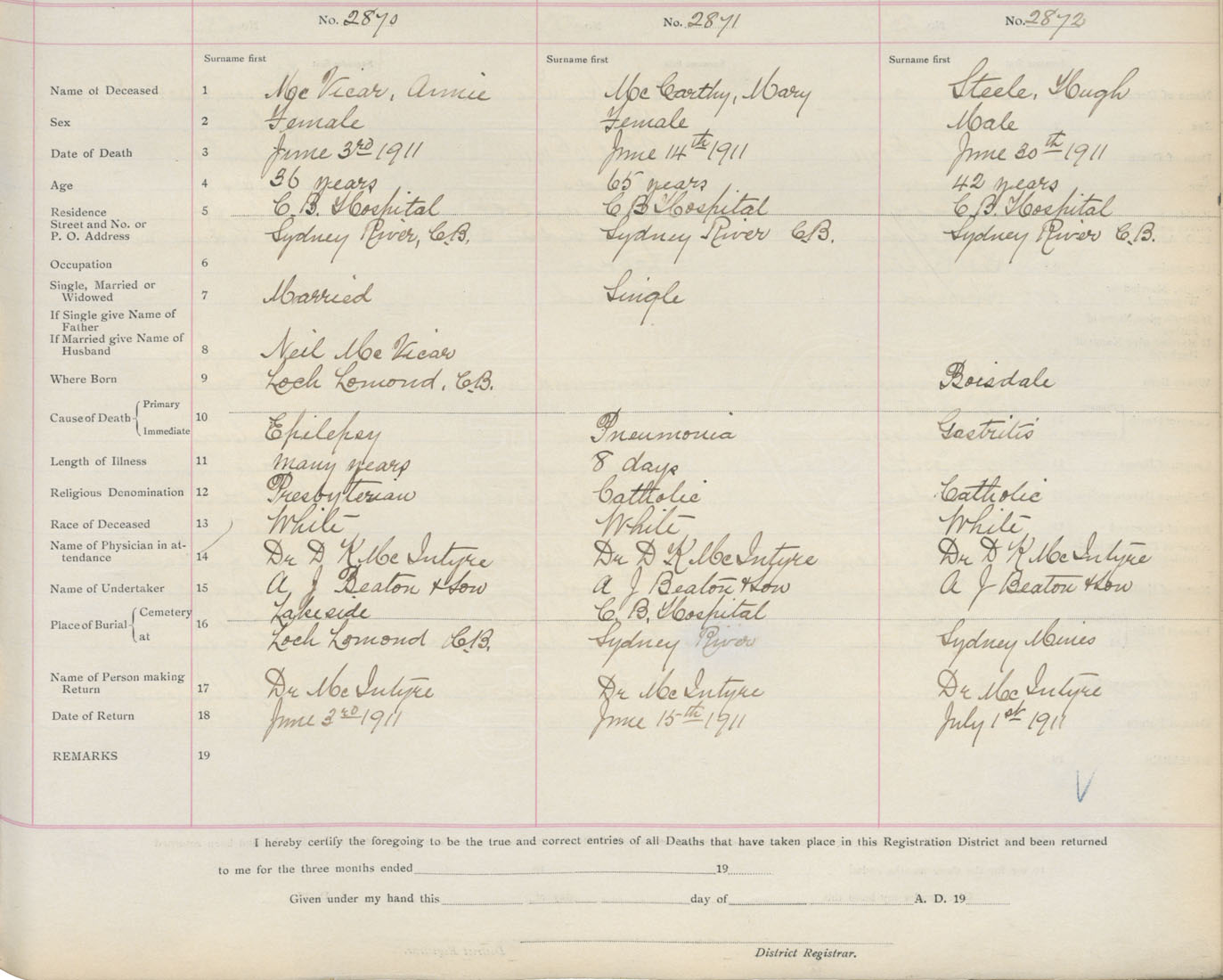Death Registration: Year: 1911 book: 3 page: 476 number: 2872