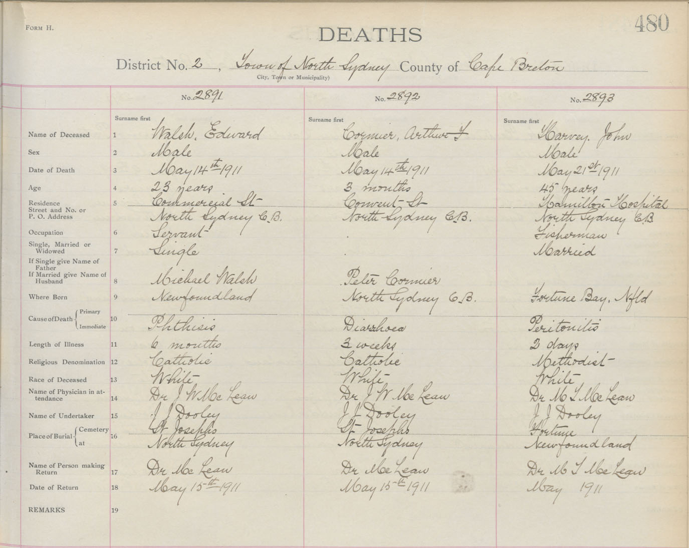 Death Registration: Year: 1911 book: 3 page: 480 number: 2893