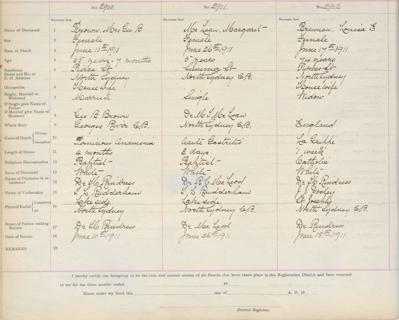 Death Registration: Year: 1911 book: 3 page: 481 number: 2902