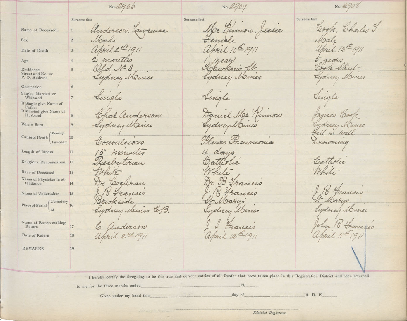 Death Registration: Year: 1911 book: 3 page: 482 number: 2908