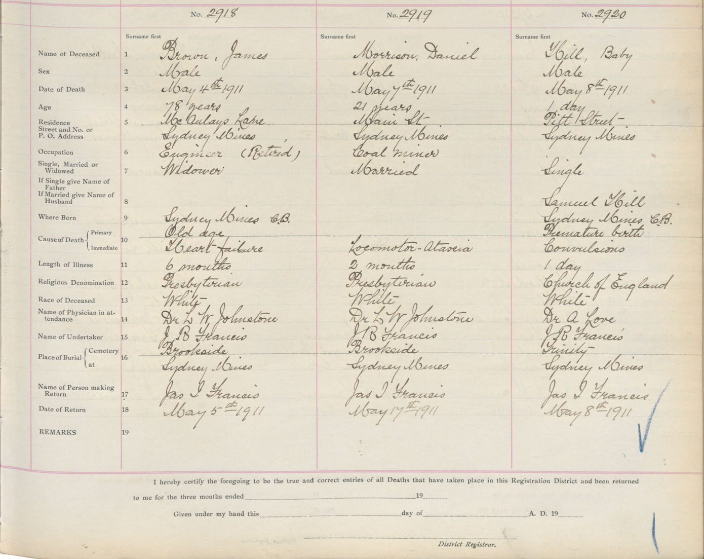 Death Registration: Year: 1911 book: 3 page: 484 number: 2920