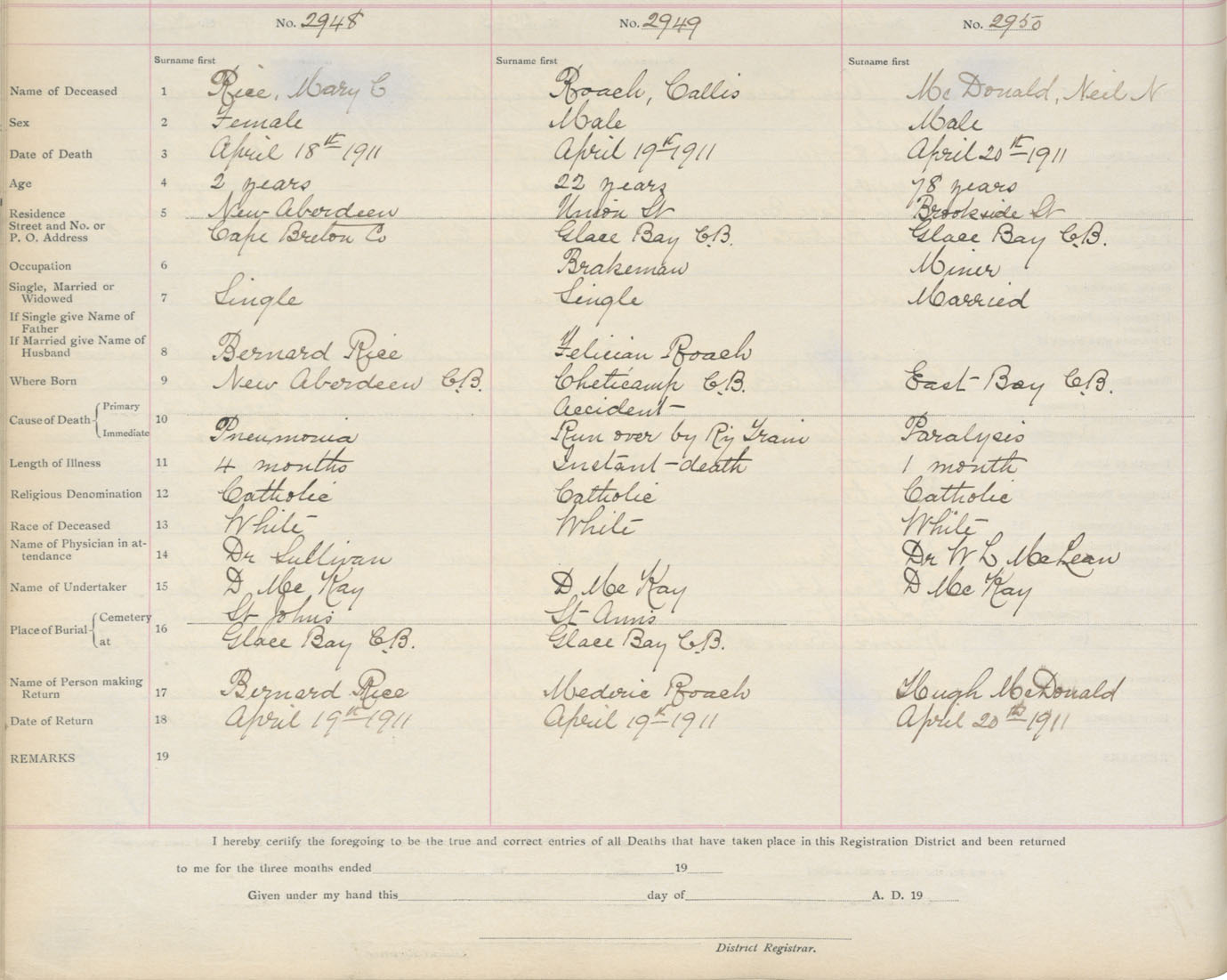 Death Registration: Year: 1911 book: 3 page: 489 number: 2950