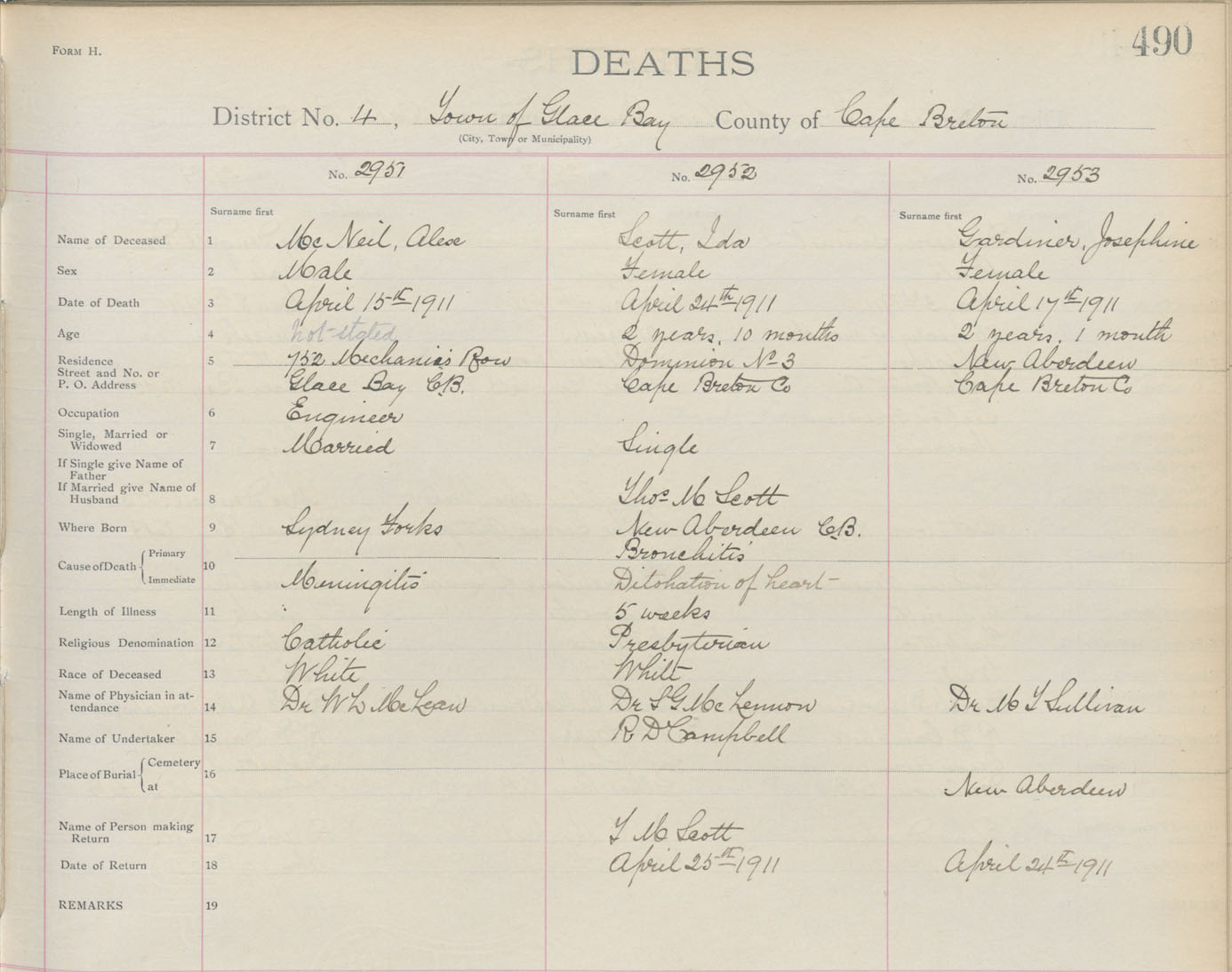 Death Registration: Year: 1911 book: 3 page: 490 number: 2953