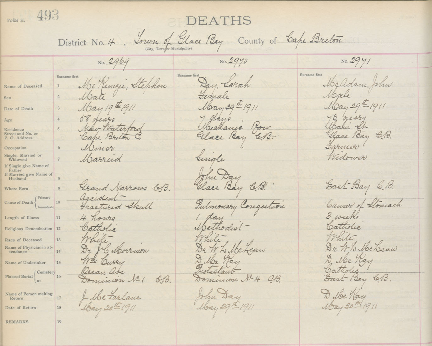 Death Registration: Year: 1911 book: 3 page: 493 number: 2971