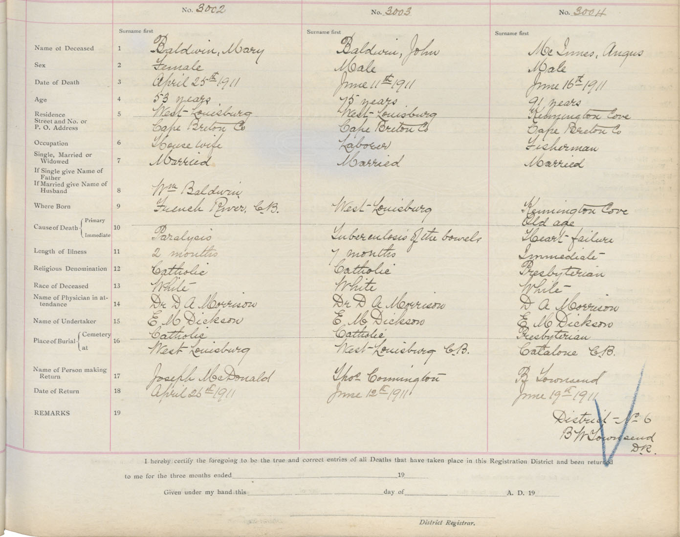 Death Registration: Year: 1911 book: 3 page: 498 number: 3004