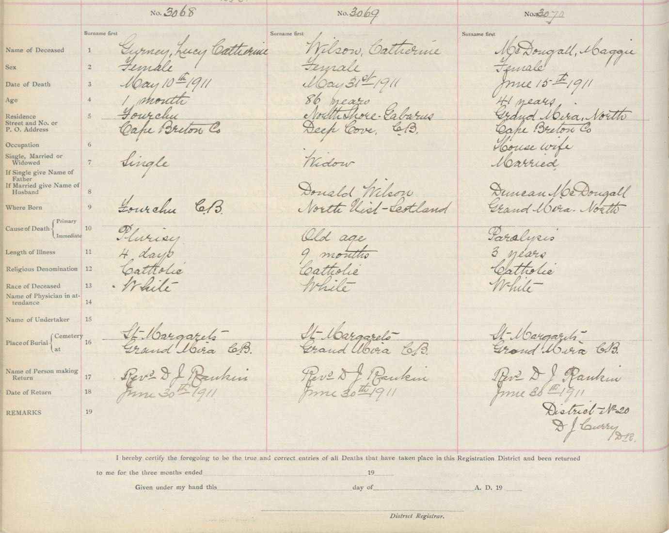 Death Registration: Year: 1911 book: 3 page: 509 number: 3069