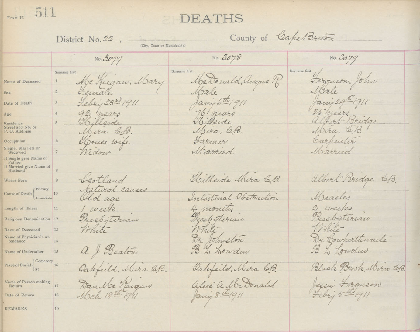 Death Registration: Year: 1911 book: 3 page: 511 number: 3077