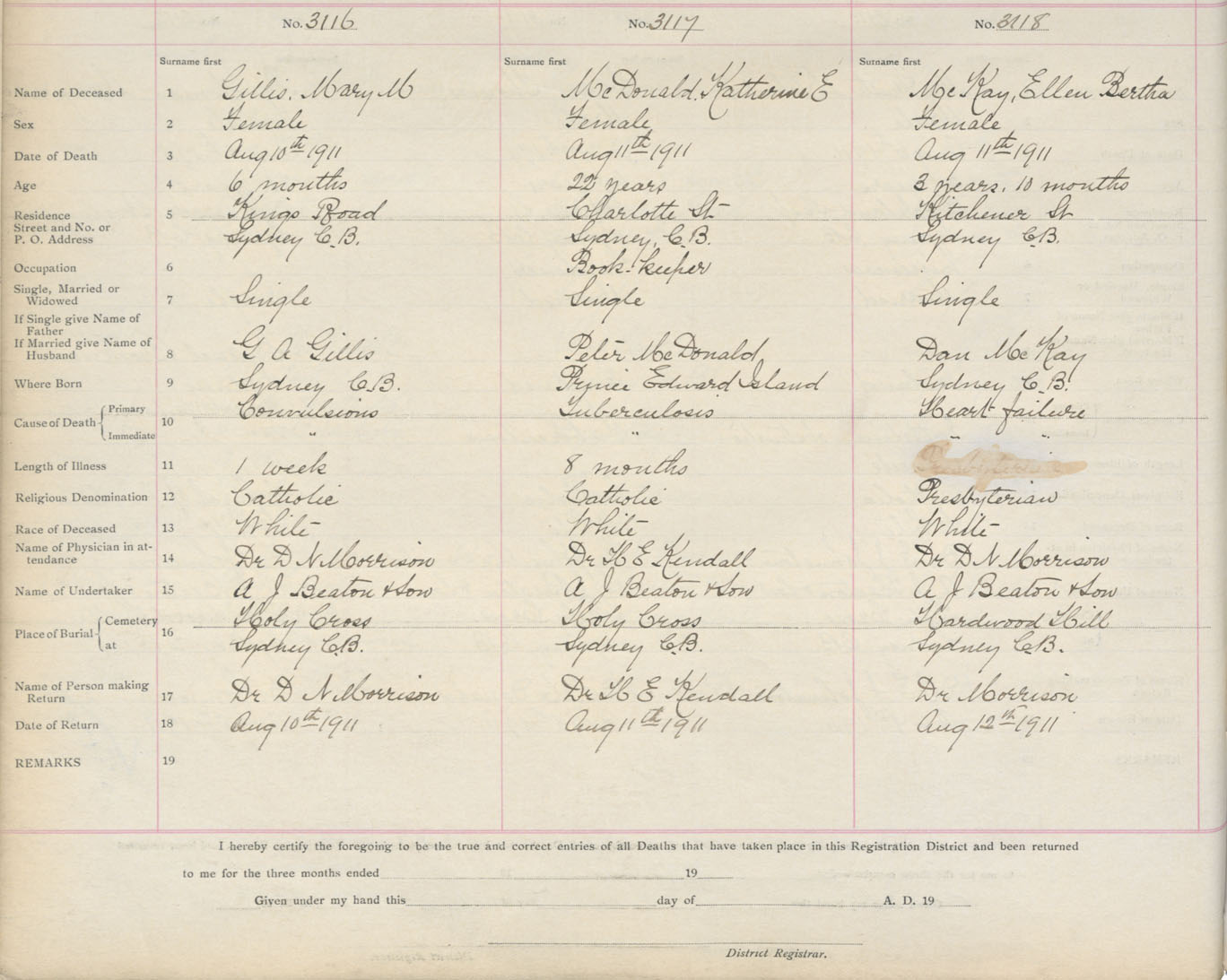 Death Registration: Year: 1911 book: 3 page: 517 number: 3116