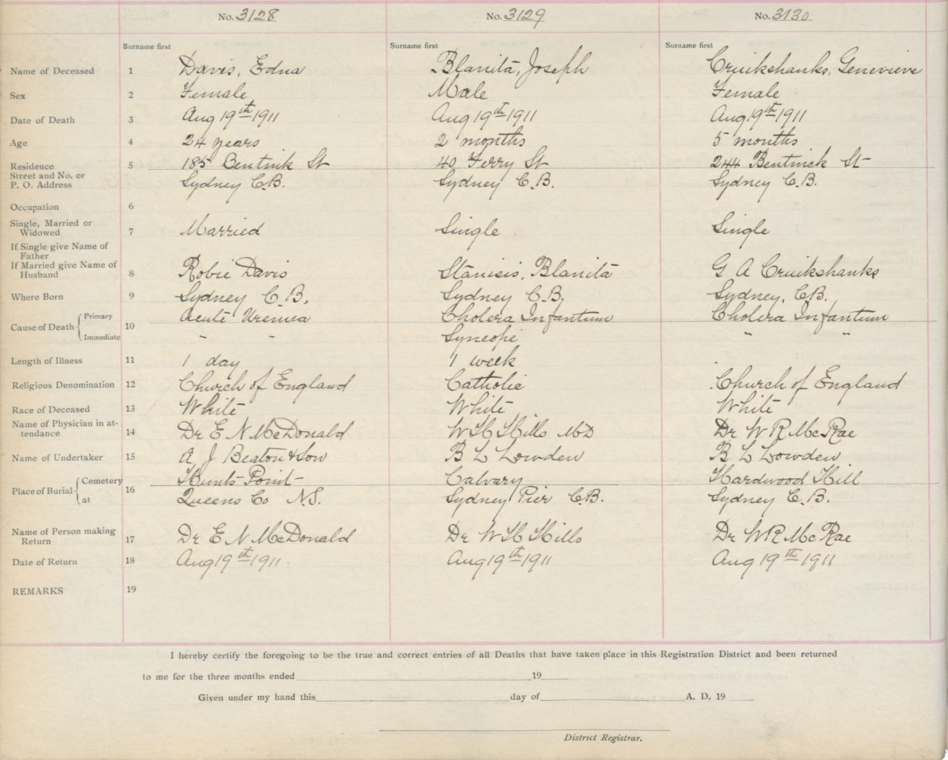 Death Registration: Year: 1911 book: 3 page: 519 number: 3128