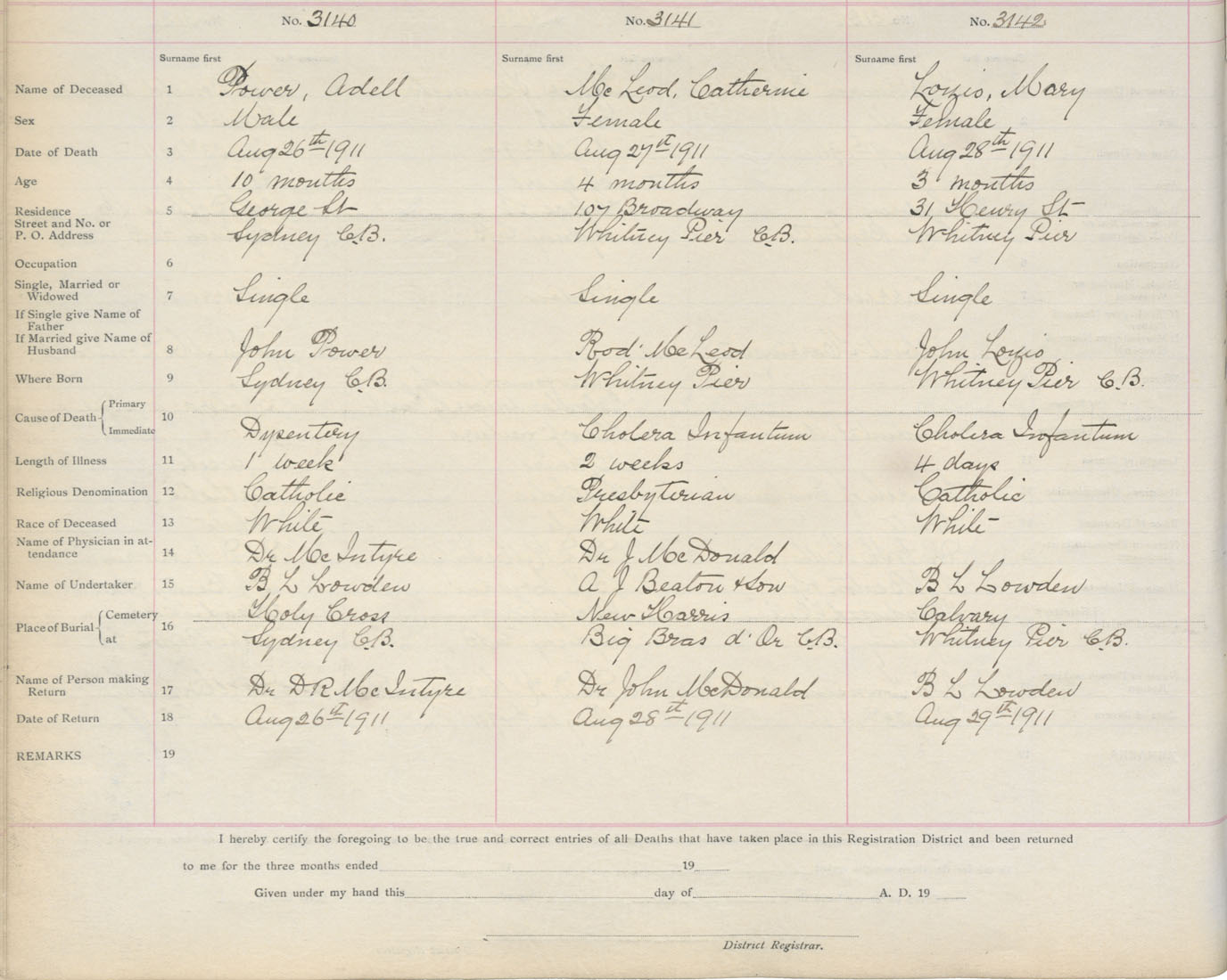 Death Registration: Year: 1911 book: 3 page: 521 number: 3140