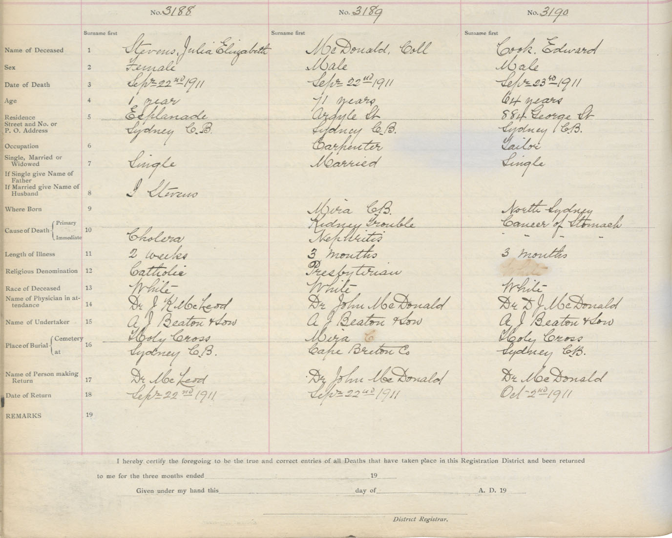 Death Registration: Year: 1911 book: 3 page: 529 number: 3188