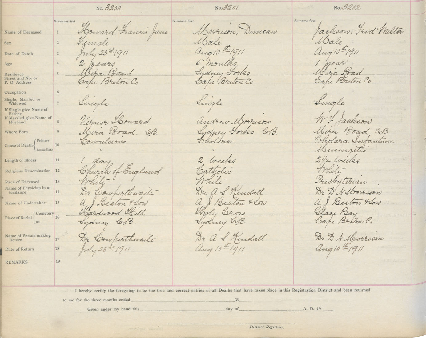 Death Registration: Year: 1911 book: 3 page: 531 number: 3200