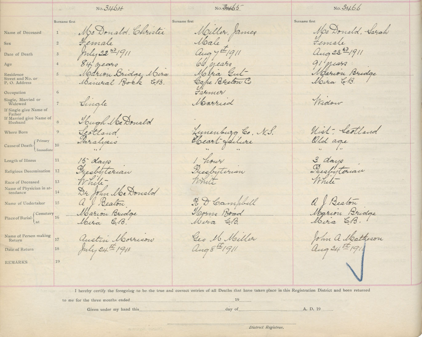 Death Registration: Year: 1911 book: 3 page: 575 number: 3466