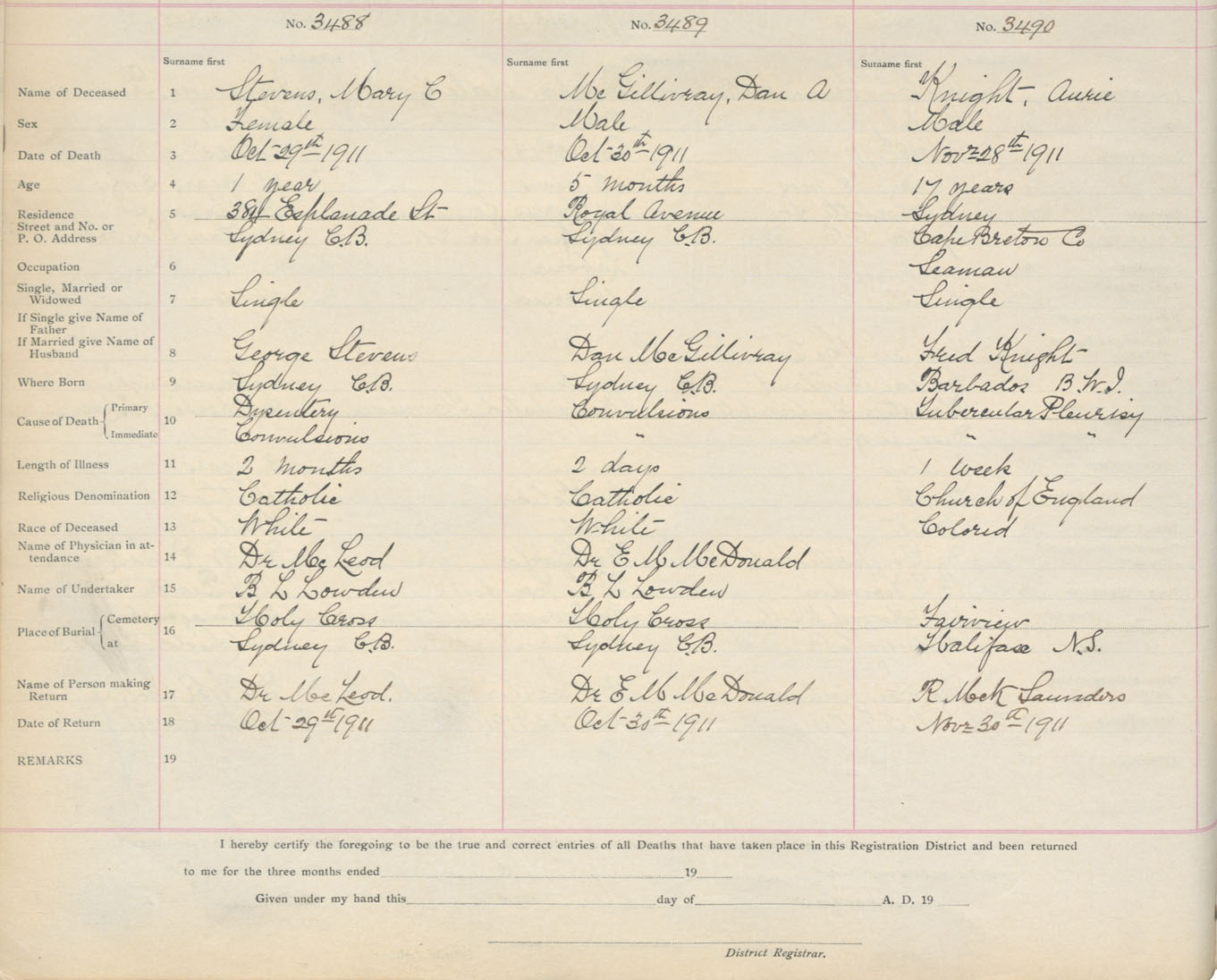 Death Registration: Year: 1911 book: 3 page: 579 number: 3490
