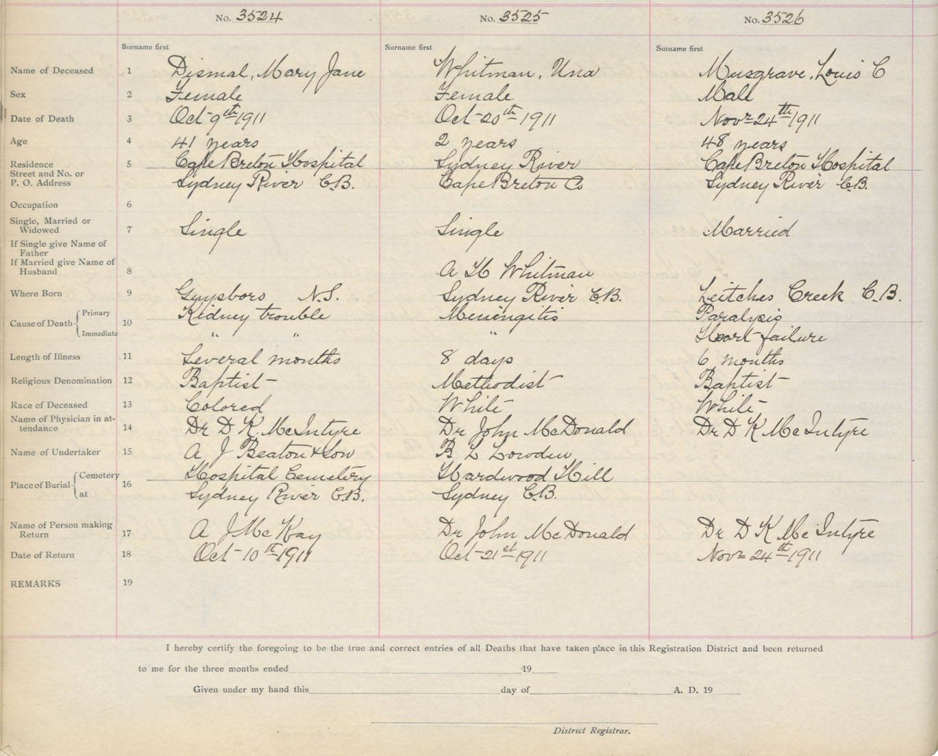 Death Registration: Year: 1911 book: 3 page: 585 number: 3526
