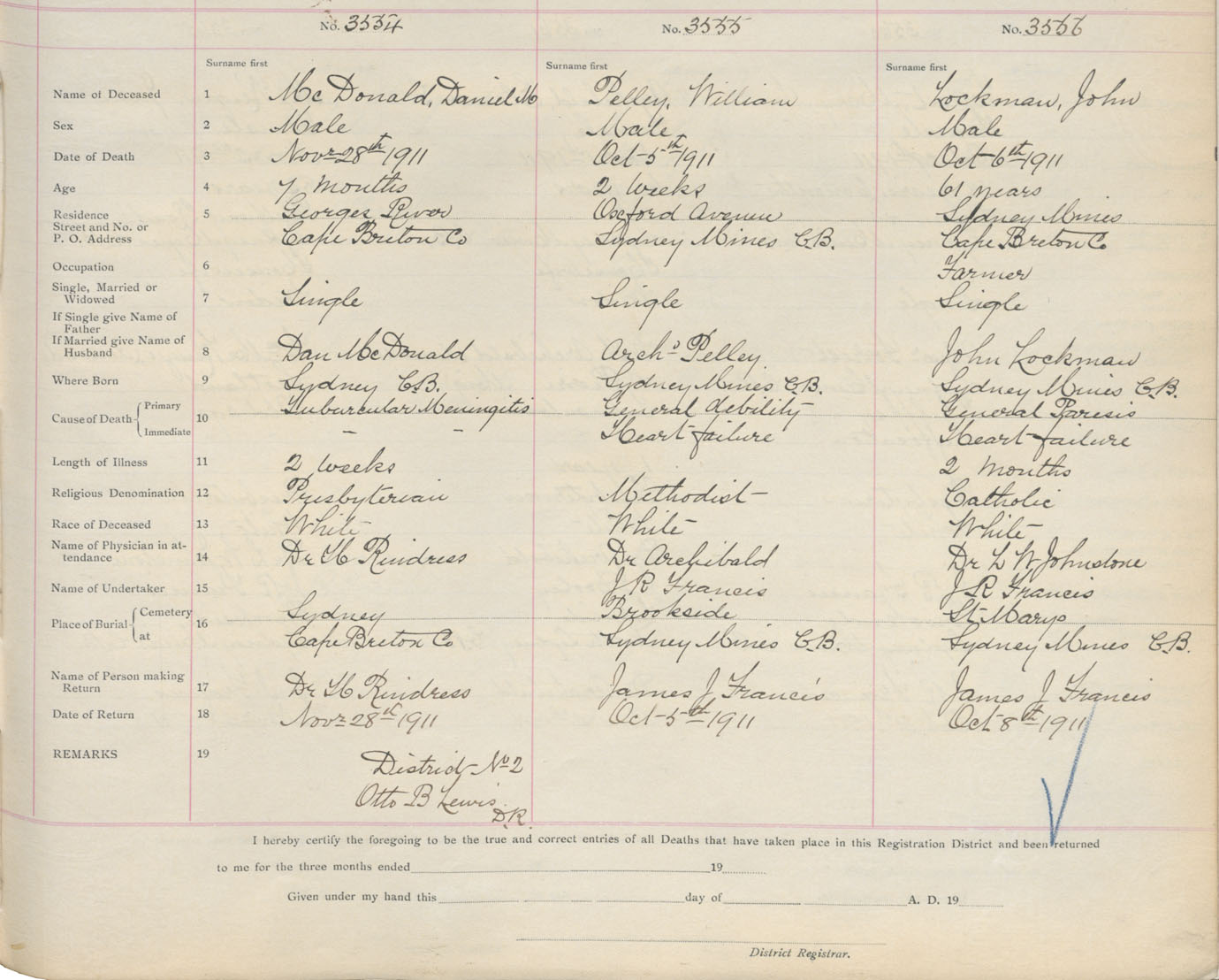 Death Registration: Year: 1911 book: 3 page: 590 number: 3556