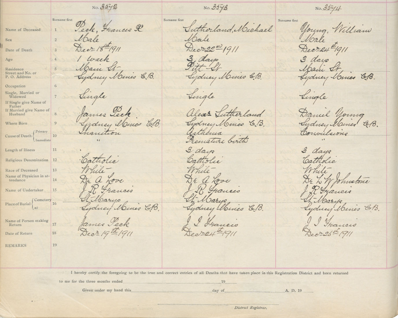 Death Registration: Year: 1911 book: 3 page: 593 number: 3574