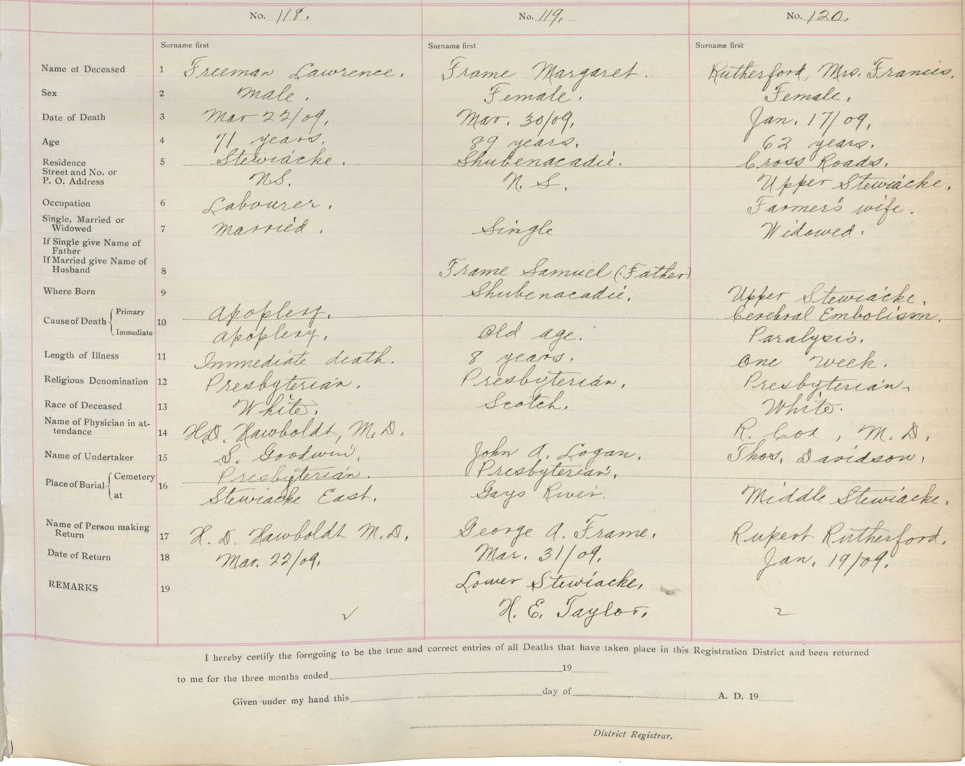 Death Registration: Year: 1909 book: 4 page: 20 number: 118