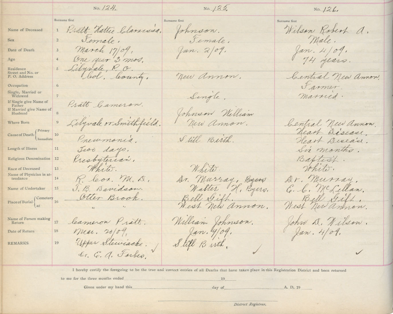 Death Registration: Year: 1909 book: 4 page: 21 number: 124