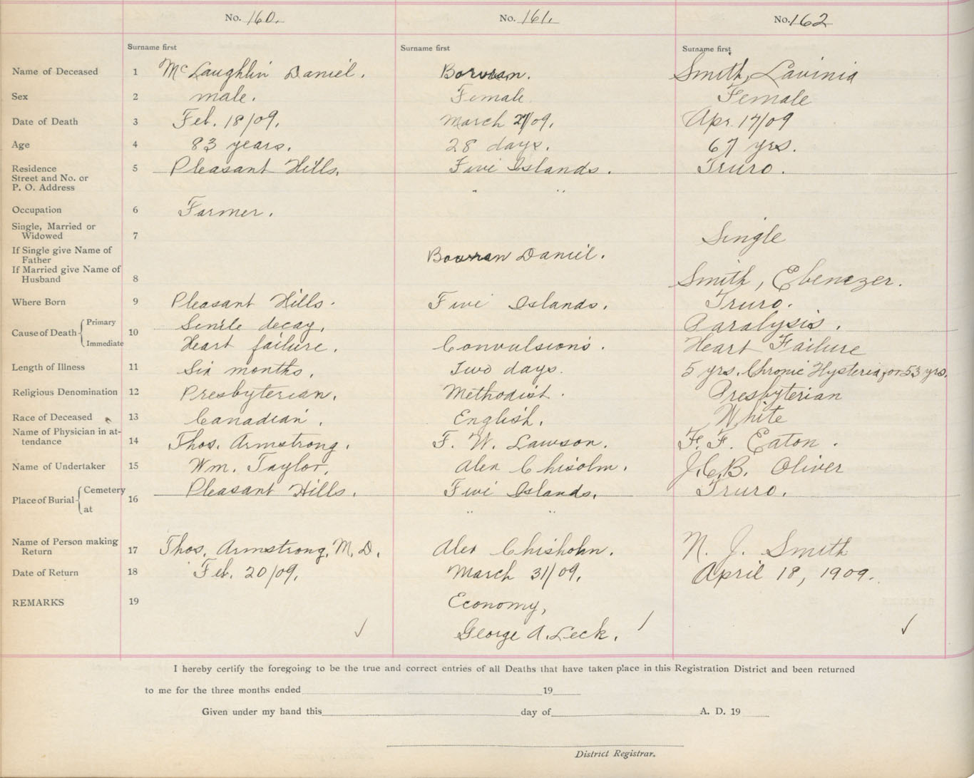 Death Registration: Year: 1909 book: 4 page: 27 number: 160