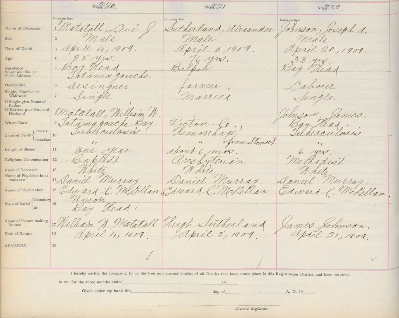 Death Registration: Year: 1909 book: 4 page: 37 number: 220