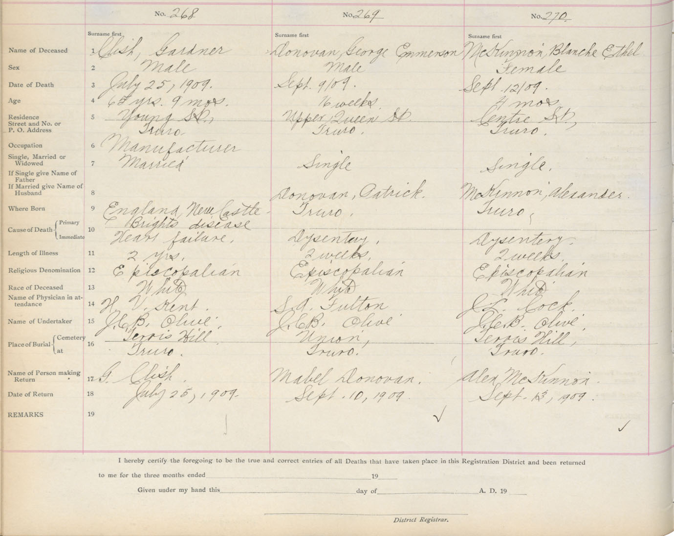 Death Registration: Year: 1909 book: 4 page: 45 number: 270