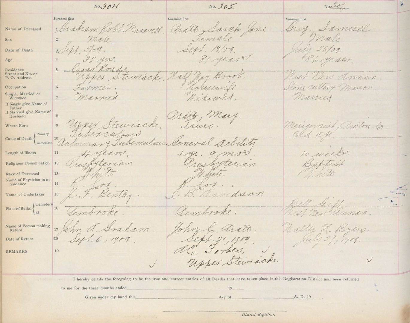 Death Registration: Year: 1909 book: 4 page: 51 number: 306