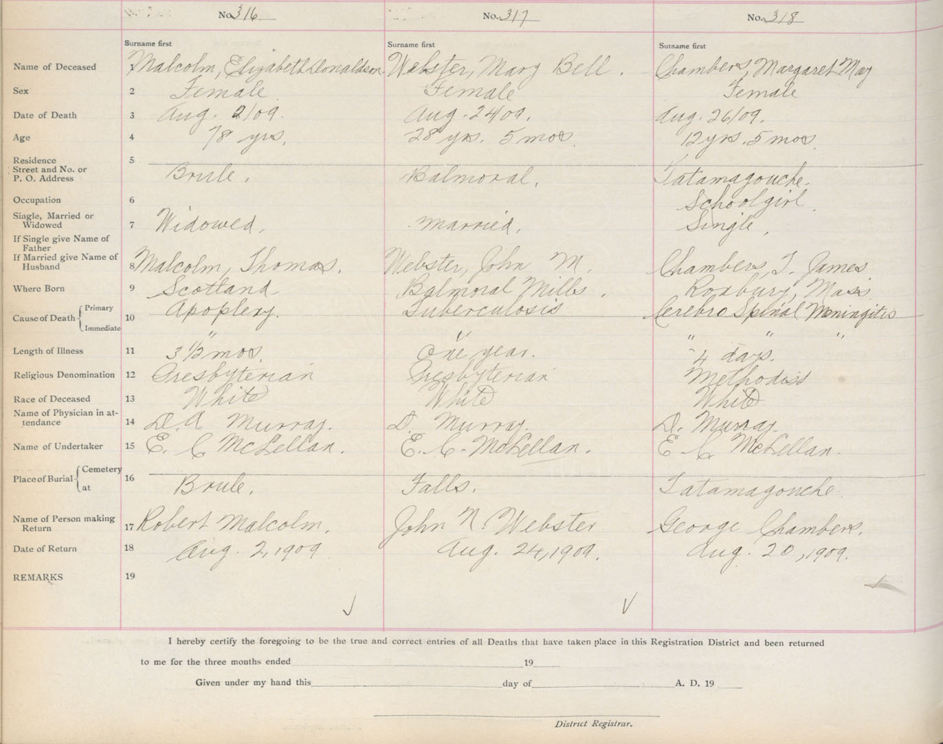 Death Registration: Year: 1909 book: 4 page: 53 number: 318