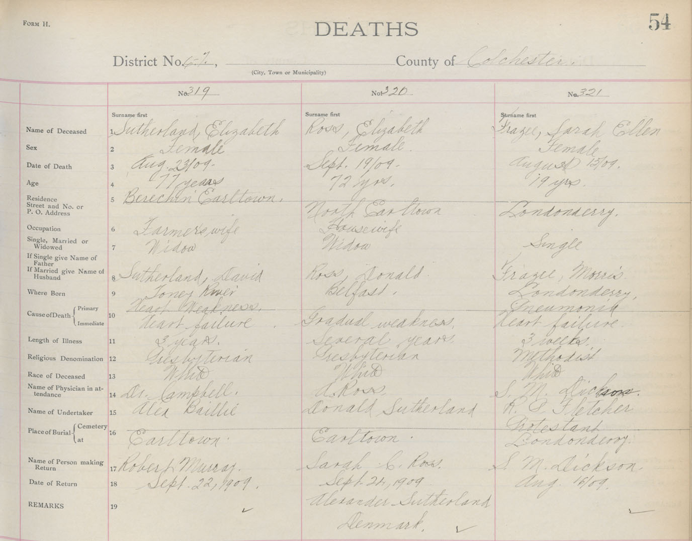 Death Registration: Year: 1909 book: 4 page: 54 number: 321
