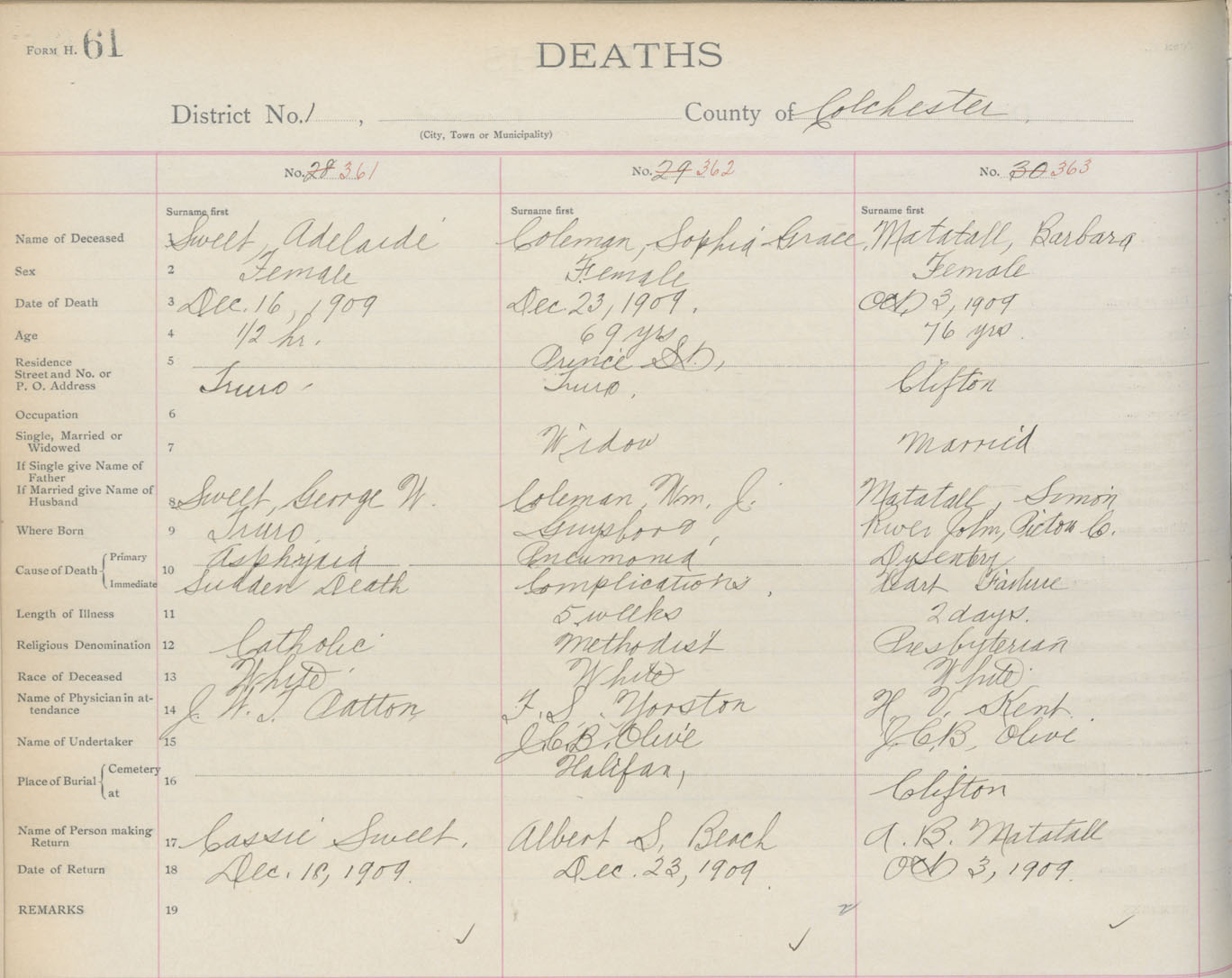 Death Registration: Year: 1909 book: 4 page: 61 number: 363