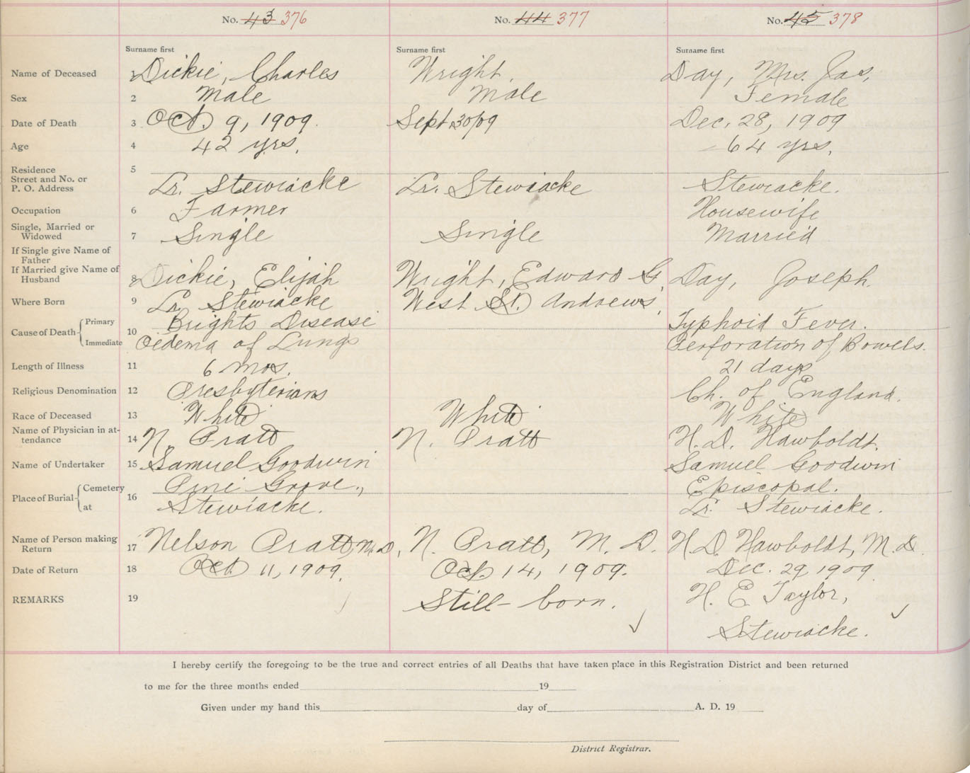 Death Registration: Year: 1909 book: 4 page: 63 number: 378