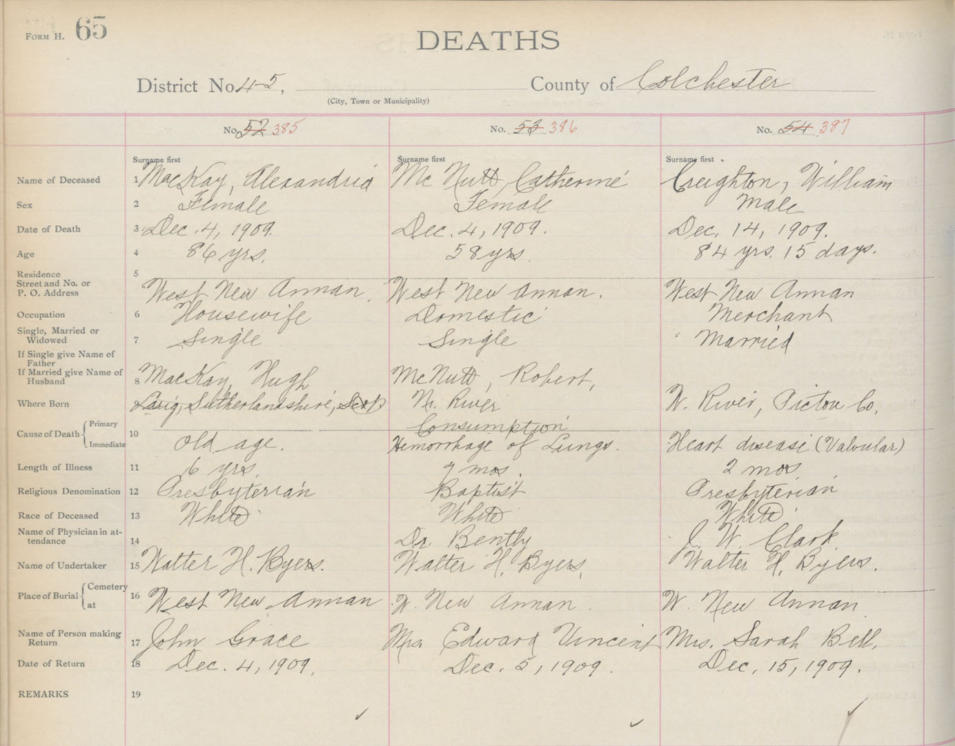 Death Registration: Year: 1909 book: 4 page: 65 number: 387