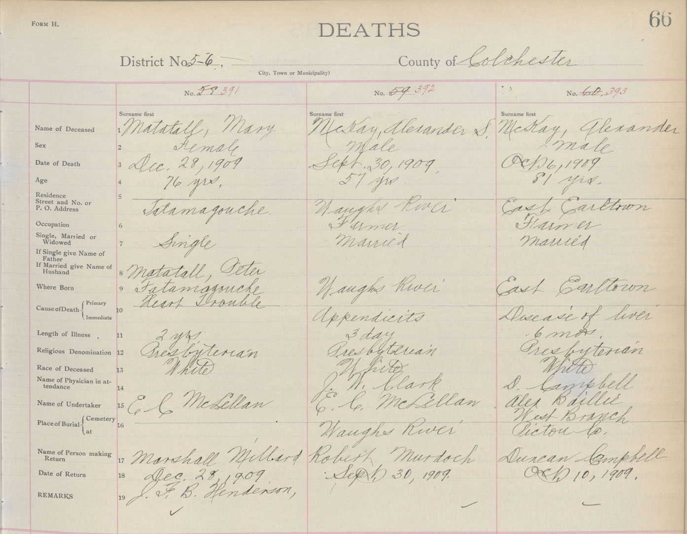 Death Registration: Year: 1909 book: 4 page: 66 number: 393