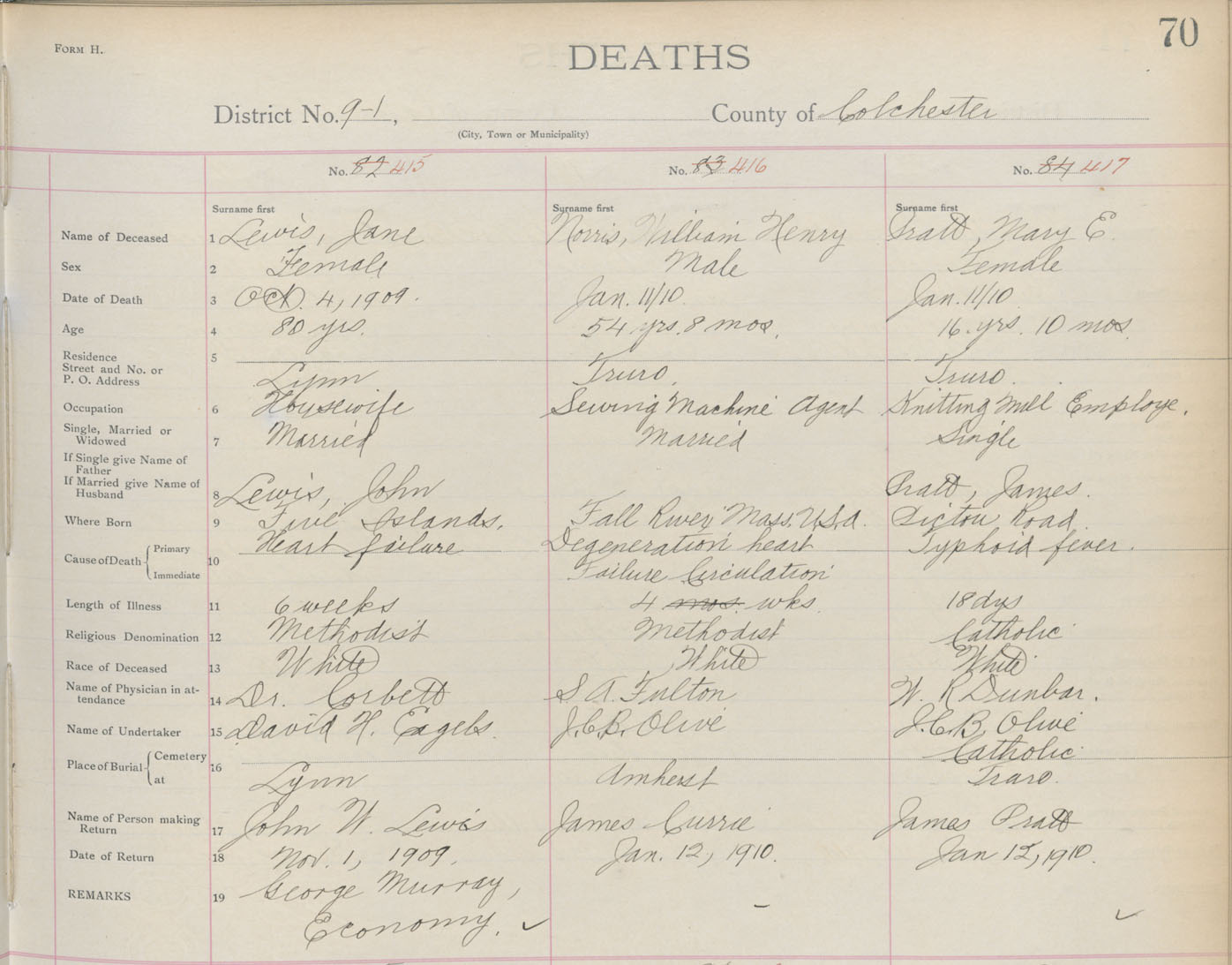 Death Registration: Year: 1909 book: 4 page: 70 number: 415