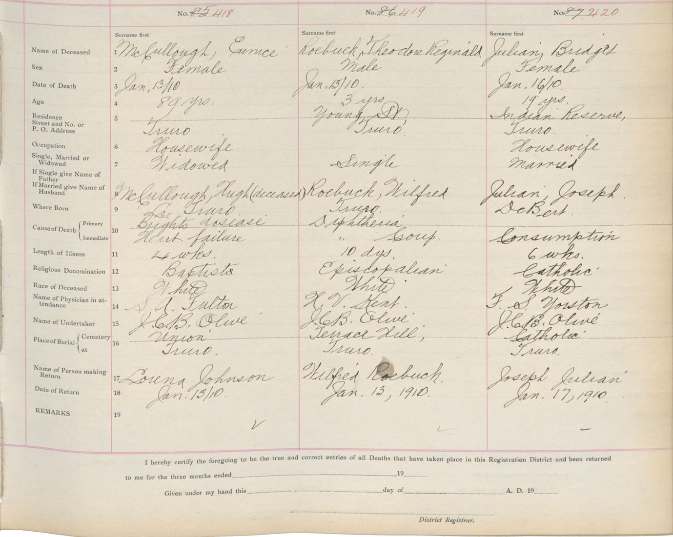 Death Registration: Year: 1910 book: 4 page: 70 number: 418