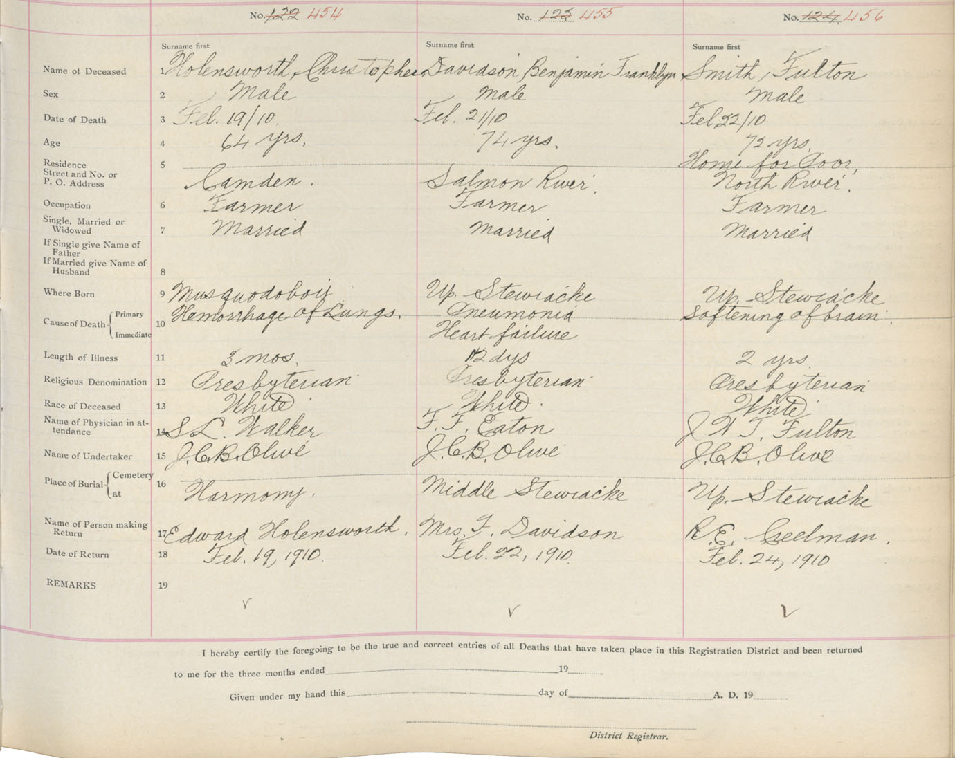Death Registration: Year: 1910 book: 4 page: 76 number: 456