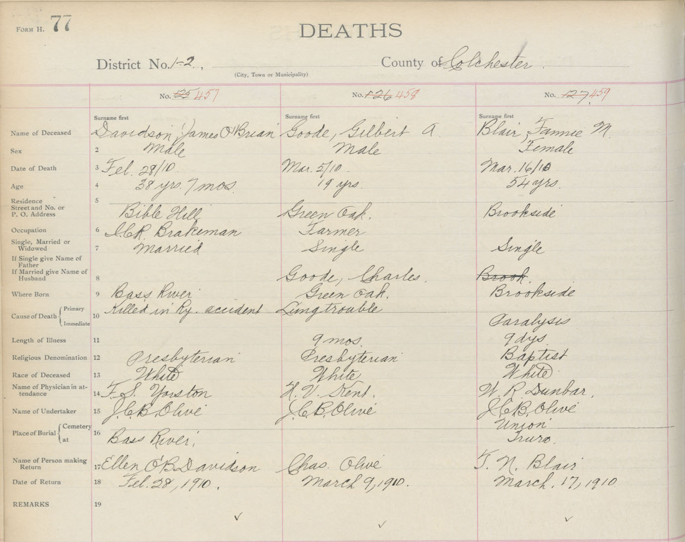 Death Registration: Year: 1910 book: 4 page: 77 number: 459