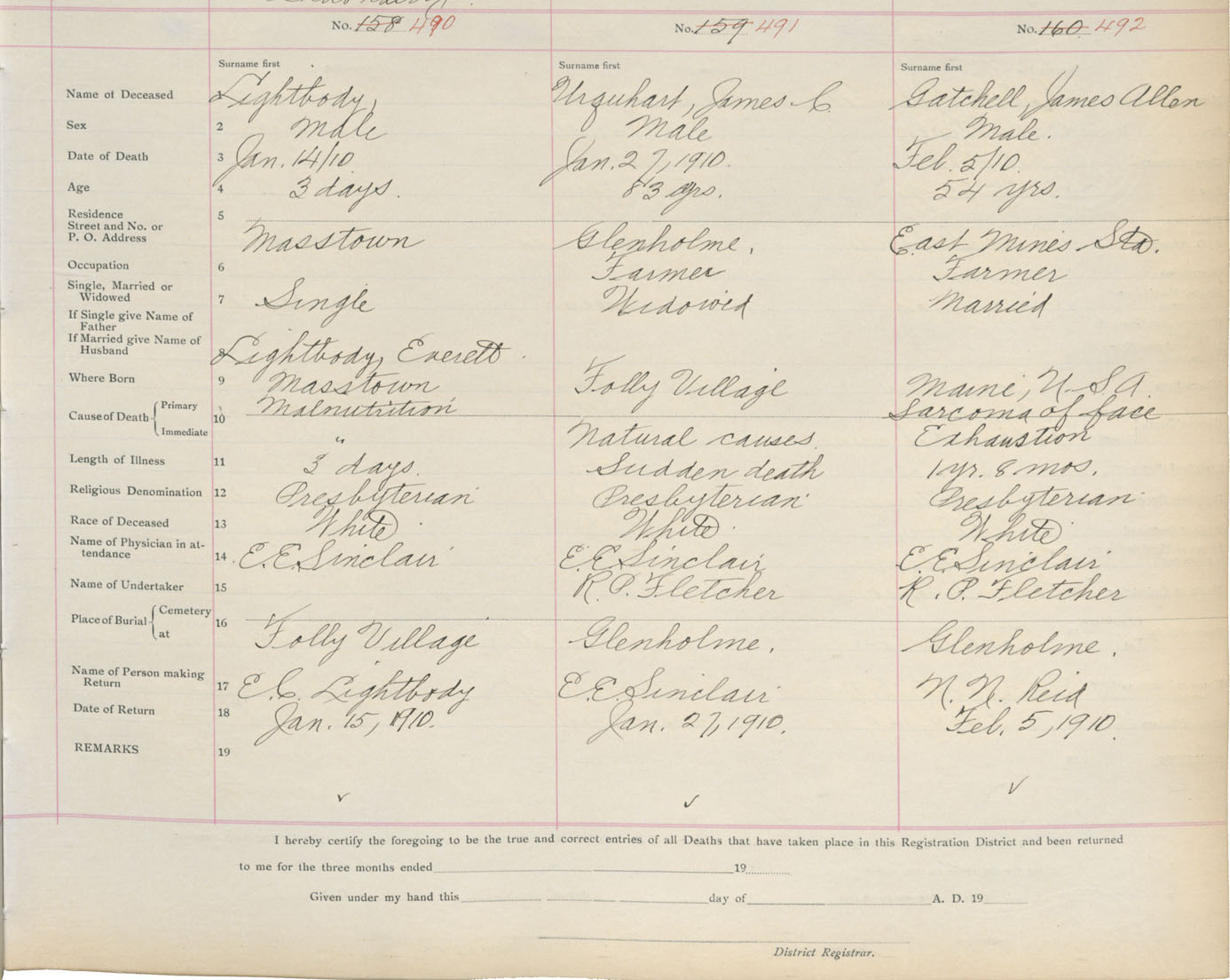 Death Registration: Year: 1910 book: 4 page: 82 number: 490