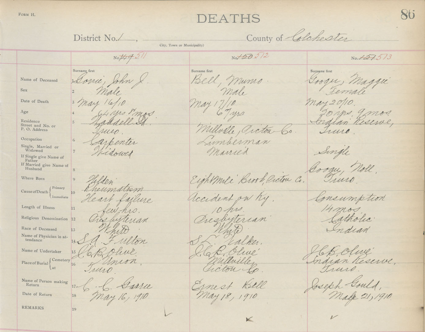 Death Registration: Year: 1910 book: 4 page: 86 number: 511