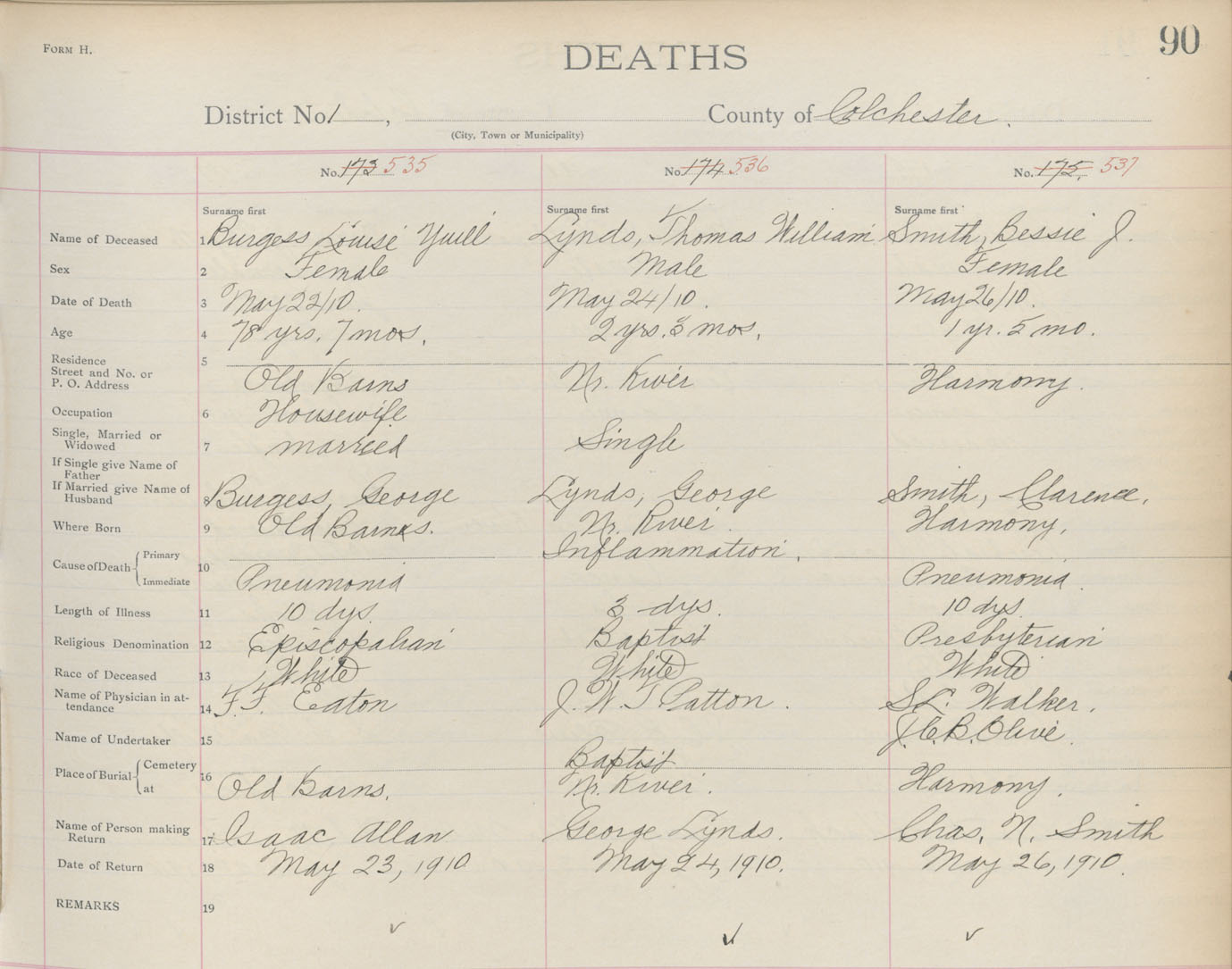 Death Registration: Year: 1910 book: 4 page: 90 number: 535