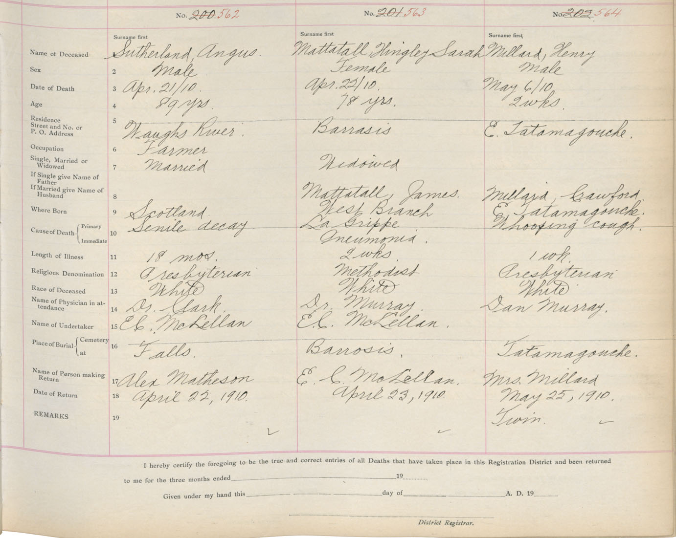 Death Registration: Year: 1910 book: 4 page: 94 number: 564