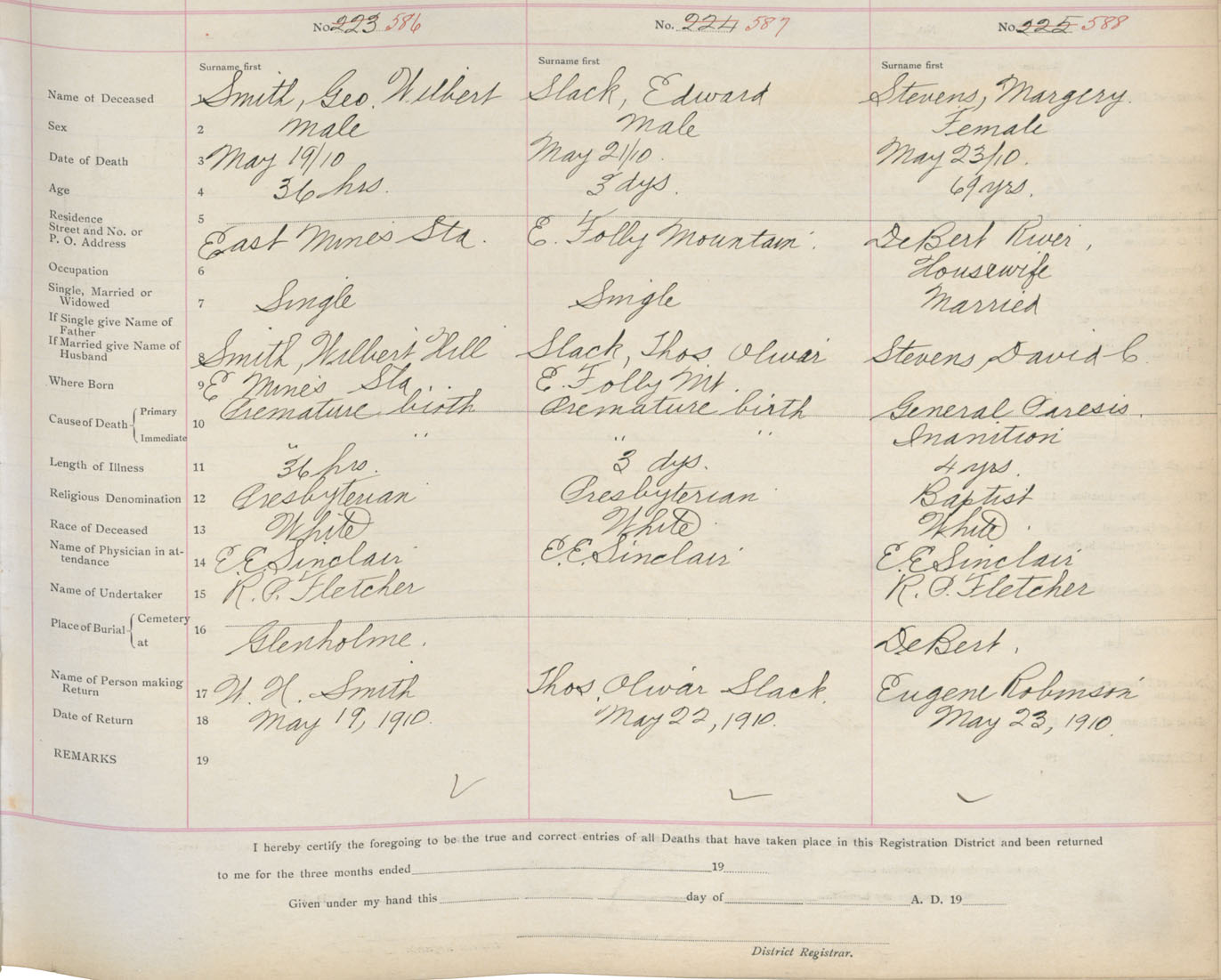 Death Registration: Year: 1910 book: 4 page: 98 number: 586