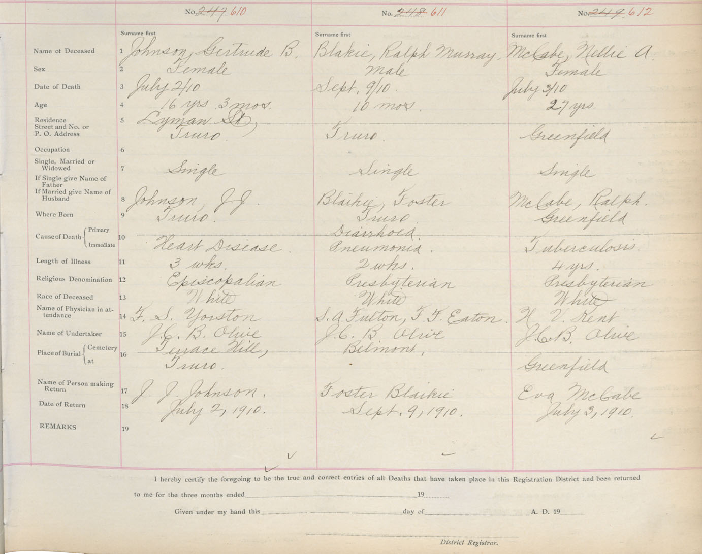 Death Registration: Year: 1910 book: 4 page: 102 number: 610