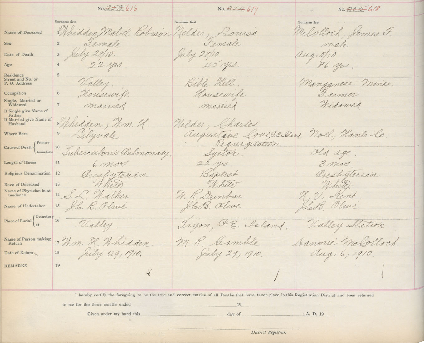 Death Registration: Year: 1910 book: 4 page: 103 number: 616