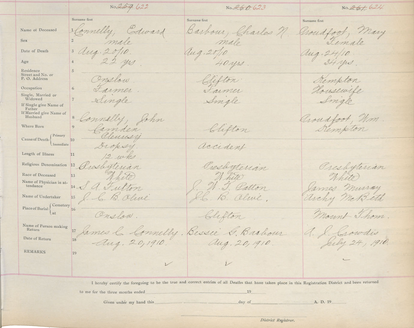 Death Registration: Year: 1910 book: 4 page: 104 number: 622