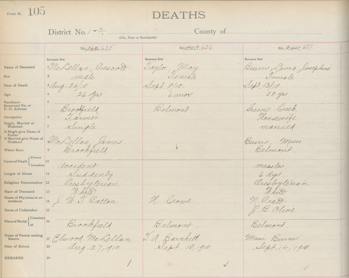 Death Registration: Year: 1910 book: 4 page: 105 number: 625
