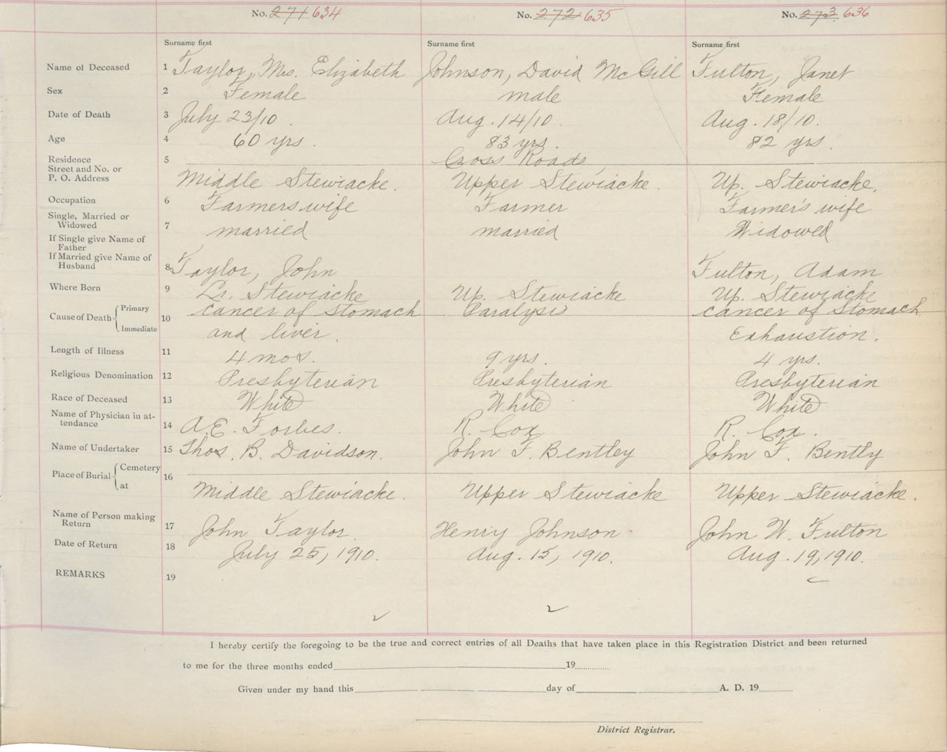 Death Registration: Year: 1910 book: 4 page: 106 number: 634