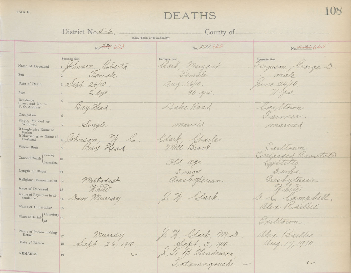 Death Registration: Year: 1910 book: 4 page: 108 number: 643