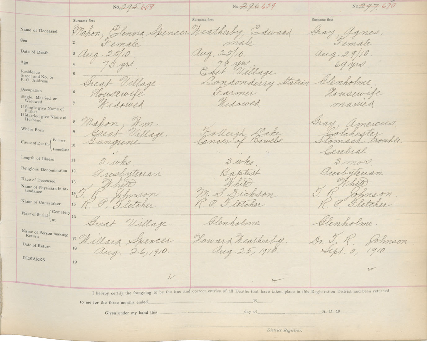 Death Registration: Year: 1910 book: 4 page: 110 number: 658