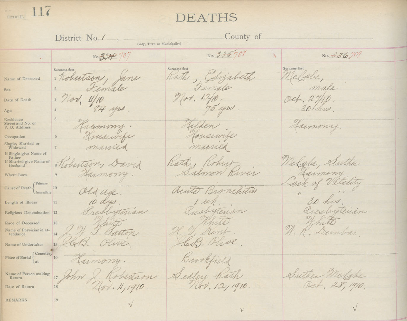 Death Registration: Year: 1910 book: 4 page: 117 number: 707